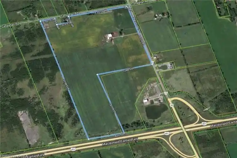 This 100 acre lot is the ideal strategic location for a regional presence along the 401 in Eastern Ontario, located midway between Toronto and Montreal. Entry immediately off the 401 (Exit 566) & Marysville Rd exchange with direct east and west bound access, this flat and easily accessible property provides massive potential for any company looking for an anchor point in Eastern Ontario along Canada’s most travelled highway, connecting the country with North America’s eastern seaboard. Bordered by three roads with over 3000 ft of combined frontage, this property offers a great opportunity for any company looking to expand their logistics and transportation footprint. Permitted uses include Travel/Service Centre (Gas Station/Hospitality/Restaurants), Distribution centre, Warehousing, Transport Switching Yard and ‘Dry Industrial’ uses, which are all consistent within the County of Hastings Official Plan for the subject property’s zoning designation.