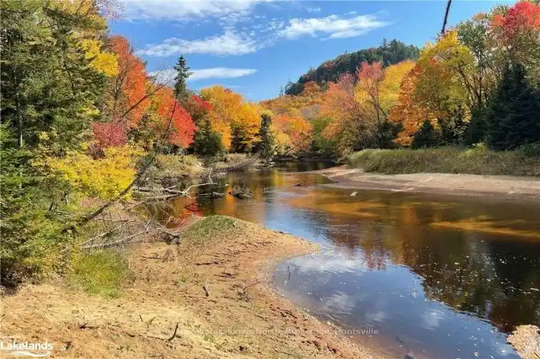 Best of both worlds. 34 Acres of wooded riverfront paradise with privacy of Algonquin Park, yet 10 minutes from Downtown Huntsville with great year round access. The property is fronting on the Big East river with spectacular sand shore / beach. Great canoeing/ kayaking. Paddle right down from Algonquin Park to this property and continue to downtown Huntsville ( if you wish) its an unforgettable experience through the wilderness. Subject property has an approved building site of approximately 2 acres close to the road. The rest of the property can only be used for recreational purposes as it is in a ” flood plain” There are trails through the property to the beach/ cabin area. This lovely cabin is right by the sand beach in the middle of the woods with exceptional privacy and solitude. Come take a look and experience it for yourself.