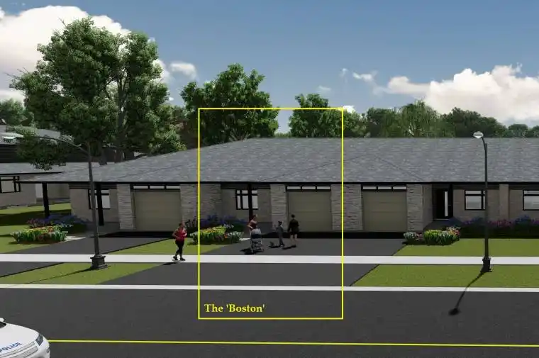 Limited time New Price!! Almost Completed! Pinnacle Quality Homes is proud to present the Boston bungalow/townhouse plan in South Pointe subdivision in Exeter. All units are Energy Star rated; Contemporary architectural exterior designs. This 1286 sqft bungalow plan offers 2 beds/2 full baths, including master ensuite & walk-in closet; Sprawling open concept design for Kitchen/dining/living rooms. 9′ ceilings on main floor; High quality kitchen and bathroom vanities with quartz countertops; your choice of finishes from our selections (depending on stage of construction); 2 stage high-eff gas furnace, c/air and HRV included. LED lights; high quality vinyl plank floors in principle rooms; Main floor Laundry Room; Central Vac roughed-in. Fully insulated/drywalled/primed single car garage w/opener; concrete front and rear covered porch (with BBQ quick connect). Basement finish option for extra space (rough-in for extra bath) with high ceilings and ‘egress’ window for additional Bedroom. Large yard (fully sodded). Photo is for reference only, actual house may look different.