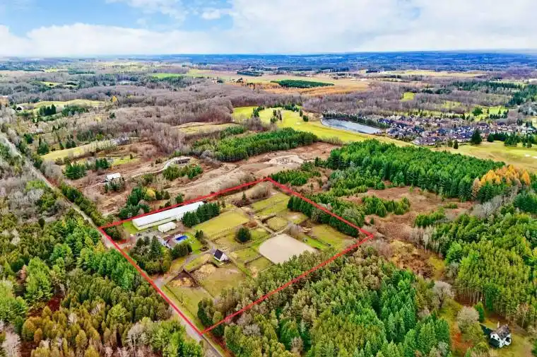 Gorgeous 10-acre lot of equestrian retreat in the heart of Whitchurch-Stouffville. Conveniently situated minutes from Highway 404, the property includes an inground pool, a private hot tub room, oversized deck, an exercise room, a horse riding arena with 28 stalls, solar panels, and much more. Step into sun-filled open concept living with pot lights throughout, hardwood floors, a gourmet kitchen, thoughtful and functional layout. Too many features to list, do not miss out on this rare opportunity. **EXTRAS** All appliances, Elfs