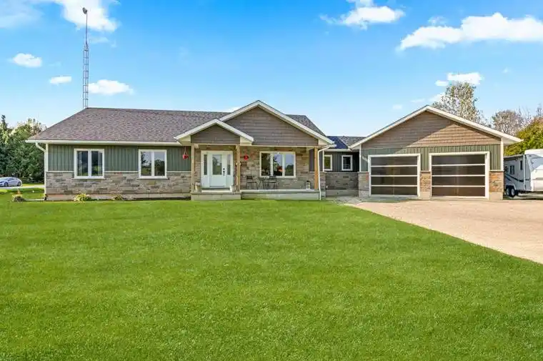 Tucked into a peaceful village setting, this custom-built bungalow is the perfect mix of quality craftsmanship, thoughtful design, and everyday comfort with just the right touch of luxury. Designed for easy one-floor living, it offers a total of 5 bedrooms, 4 bathrooms and open, airy living spaces that welcome you home. The main floor showcases an open-concept layout ideal for both entertaining and everyday comfort. A chef-inspired kitchen flows seamlessly into the expansive living and dining areas, all framed by oversized windows that flood the space with natural light. The elegant primary suite is a private retreat, featuring a walk-in closet worthy of a fashion enthusiast, a luxurious five-piece ensuite, and direct access to the covered rear deck perfect for morning coffee or unwinding in the evening. Two additional main-floor bedrooms offer generous proportions, oversized windows, and ample closet space. A thoughtfully designed mudroom/laundry complete with 2pc powder room and direct access to the heated double garage, adds to the home’s exceptional functionality. Heated tile floors ensure comfort on the main level, while high ceilings and abundant windows continue into the fully finished lower level. Here, you’ll find two more bedrooms, a full bath, a home office/gym, a spacious family room with kitchenette, plus dedicated utility, storage and cold storage spaces. Outdoors the spacious 0.6 acre lot boasts a poured concrete patio, covered front porch, extended back deck and lovely landscaping featuring an attractive gravel terrace with a fire pit that ensure you’re ready to spend the summer entertaining or relaxing outdoors. Just a stone’s throw from the Bruce Trail, the scenic beauty of Walters Falls and local farm stores. Under 20 minutes from Southern Georgian Bay attractions + shopping, schools, health care and amenities in nearby Markdale, Meaford & Owen Sound. This distinguished home offers the best of rural tranquility combined with refined modern living.