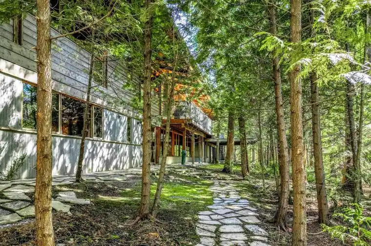 Nestled within the exclusive Cedar Ridge community in Tiny Township, this architect-designed retreat offers a rare opportunity to own a custom waterfront home. Designed by acclaimed architect Peter Bohlin – whose work includes Bill Gates summer residence – this one-of-a-kind Georgian Bay residence was honoured with the 2003 Residential Architect Design Award, recognizing its architectural excellence. Thoughtfully designed & expertly built in 2000, the home balances modern sophistication with a deep respect for its Georgian Bay surroundings. With over 5,800 sq ft of finished living space, including a 2,750 sq ft walkout lower level, the home features 3+2 bedrooms and 4 bathrooms, including a private principal suite. Floor-to-ceiling glass and rich post & beam construction with imported California pine create light-filled interiors that creates a seamless connection to the outdoors. At the heart of the home, a soaring stone wood-burning fireplace brings warmth & architectural impact to the open-concept living & dining areas. Sleek, modern & efficient, the kitchen reflects the homes quiet sophistication & easy flow for everyday living & entertainment. The fully finished walkout level includes additional bedrooms, abundant natural light, & a sauna – perfect for relaxation after a day on the water, whether paddling the shoreline, lounging by the dock, or simply enjoying the peaceful surroundings. Built with enduring quality, with in-floor radiant heating on both levels, a new boiler & hot water tank (2025), & propane generator for reliable 4 season comfort. The 2ac forested lot features 246ft of shoreline on Georgian Bay. A band of evergreens provides natural privacy, with the potential to open sightlines to Christian Island if desired. Just a 2hr drive from Toronto, this architectural treasure is nestled among other exceptional properties in one of Georgian Bays most prestigious communities offering privacy, serenity, & timeless design that will endure for generations.