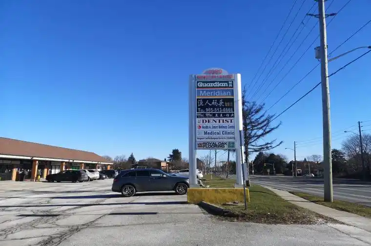Office for lease in Harvest Moon Plaza, Markham, Great location on Steeles, between Birchmount and Kennedy, TTC stop beside plaza, Plenty ground parking, High visibility, surrounded by houses, condo buildings, mature residential neighborhood. 6 individual rooms with sink, plus one large reception room, cabinets and storage organizer; 10 ft ceiling height. Sublease from Guardian Drug store, great opportunity for Doctors or Medical related services use. Gross rent $3500 include TMI, utilities and all, no other fees.