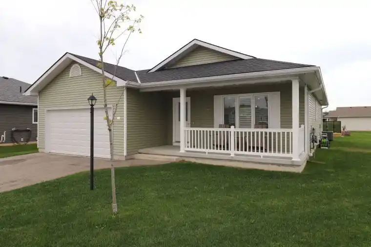 Prime location! This Cliffside B with Sunroom model offers 1594 sq ft of living space and is situated on a premium outside lot at The Bluffs! Just imagine the lifestyle, living along the shores of Lake Huron, close to shopping and fantastic golf courses along with your own private community recreation center complete with library, party rooms, sauna and indoor pool! This gorgeous home offers an extensive list of upgrades and is an absolute pleasure to show! Features include a large custom kitchen with crown moulding, huge center island, pantry, upgraded appliances and quartz countertops. The living room boasts a gas fireplace and tray ceiling. Also located adjacent to the kitchen is a spacious dining room with tray ceiling. The sunroom sports a cathedral ceiling and terrace doors leading to a private wooden deck with natural gas BBQ hookup and quality constructed gazebo. Other features include a large primary bedroom with walk-in closet, 3 pc ensuite bath with upgraded shower and quartz countertop on the vanity. Just down the hall is a spacious second bedroom and 4 pc main bath with linen closet and quartz counter top on the vanity. California shutters and upgraded light fixtures are also prevalent throughout. There are plenty of storage options in the home as well including lots of closets and a full crawl space with concrete floor. There is also an attached two car garage with hook up for an electric vehicle! This home is truly one of the nicest in the community, so don’t delay, call your agent today for a private viewing!