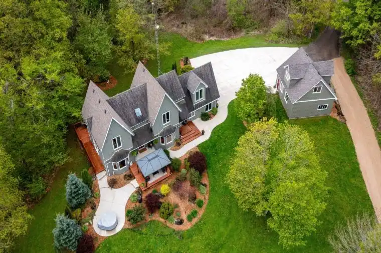 18 acre estate on paved road just outside of Flesherton with fabulous views. Winding driveway through the maples to the pristine setting with open views for miles over the Beaver Valley and beyond. The 2 storey home features antique hemlock floors on the main level and quartz counters in the kitchen, spacious living room, dining area, office and powder room. Second level bedrooms include primary bedroom, ensuite and walk-in closet, as well as a separate suite of rooms (living, bedroom and kitchenette) that could be reverted to an additional 2 bedrooms. Full finished lower level with bedroom, family room and bath. There is also a self-contained 2 storey apartment with in-floor heat. Efficient geothermal system means lower utility costs. Outbuildings include a 24×26 garage with loft, shop 28×64, 16×69 storage building, and a 32×56 shop with 12 ceilings and wood furnace. An exceptional place! Whether multi-generational living or frequent guests, this property provides all the space needed. DO NOT USE GPS to find the property (by appointment only) follow the written directions.