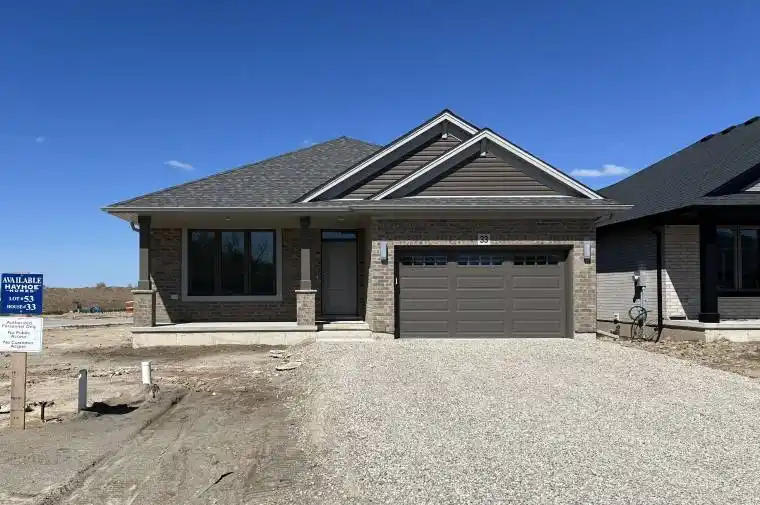 Move-in ready and ideal for young families or empty nesters, The Rumford bungalow by Hayhoe Homes features 3 bedrooms (2+1), 3 bathrooms, and a 1.5-car garage in a well-designed, open-concept layout. The main floor offers 9′ ceilings and luxury vinyl plank flooring (as per plan), with a stylish kitchen that includes quartz countertops, a tile backsplash, and central island flowing into the great room with patio door to a rear deck complete with BBQ gas line. The primary suite features a walk-in closet and a 3-piece ensuite with shower. A second bedroom, a full bathroom, and convenient main floor laundry round off the main floor. The finished basement adds a spacious family room, 3rd bedroom, and bathroom. Additional highlights include a covered front porch, central air & HRV system, Tarion New Home Warranty, and numerous upgrades throughout. Taxes to be assessed.