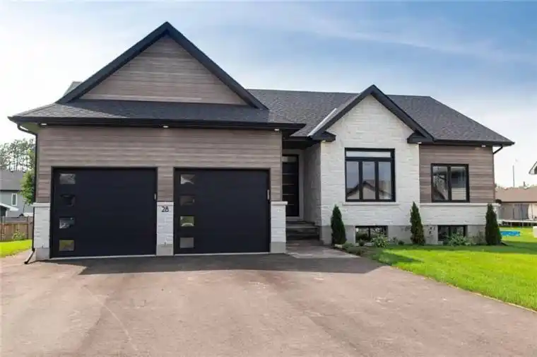 Modern luxury meets natural serenity with this The Gilchrist II by Legacy Homes on a beautiful, private 1-acre treed lot ideally situated just minutes from Garrison Petawawa, Highway 17, CNL, and the vibrant amenities of Petawawa. Built by the reputable local builder Legacy Homes, the Gilchrist II offers a harmonious blend of craftsmanship, comfort, and location.This thoughtfully designed 3-bedroom, 2-bathroom bungalow boasts approximately 1,650 sq ft of stylish main-floor living. From the moment you arrive, the striking curb appeal sets the tone and the elegant interior finishes add to the allure. Step inside to discover durable engineered hardwood floors, oversized trim, and ample natural light flowing through large windows. The chef-inspired kitchen features quartz countertops, generous cabinetry, and a seamless connection to the open-concept dining and living area, complete with 9-foot ceilings and a gas fireplace for cozy evenings.The spacious primary suite is your personal retreat, complete with a walk-in closet and a luxurious ensuite bathroom showcasing a soaker tub, custom tiled shower, and double vanity. Two more well-sized bedrooms, a full main bathroom, main floor laundry, and direct access to a concrete rear porch with overhang for year-round grilling complete the main level.The lower level offers abundant potential, with space for an additional bathroom, two more bedrooms, a den, and a family room allowing you to tailor the home to your lifestyle and future needs. Please note: this home is not yet built. Photos shown are of a previously completed Gilchrist II model by Legacy Homes, illustrating the exceptional quality and finish you can expect.