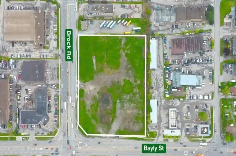 Exceptional 4.31-acre land development opportunity for sale at the highly visible and accessible intersection of Bayly Street and Brock Road. This prime exposure site is strategically located near the Highway #401 interchange, Pickering Casino Resort, Pickering GO Station, and major shopping centres, ensuring significant traffic flow within a vast population of residential and commercial-type uses. The property includes several ingress/egress points along with a flexible zoning, permitting a wide range of employment-type uses, making it an ideal development opportunity for your next venture.