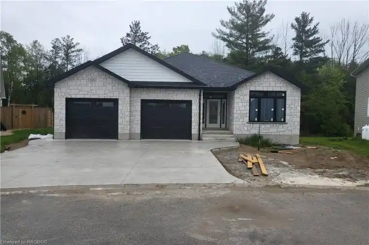 Ravine location brick bungalow, basically completed. Features finished lower level and many special features: AYA kitchen with granite or quartz countertops, center island and walk-in pantry. Patio doors from dinette to covered deck; open concept living / dining / kitchen area, with fireplaces in living areas up and down. Walk-in closets in both main floor bedrooms. Combination garage – entry and main floor laundry and mudroom. Pony panel has been installed to enable a substantial stationary electricity generator. Lower level finished with two extra bedrooms or special purpose rooms; third full bath; huge 16′ X 25′ family room with fireplace; walkout from utility area to full 2-car garage.1523 square-feet on main floor plus 1323 finished down. All this near parkland and Kincardine trail access and only four blocks to downtown, schools and arena / community centre. Yard will be sodded front and rear. Please note room measurements have been rounded..