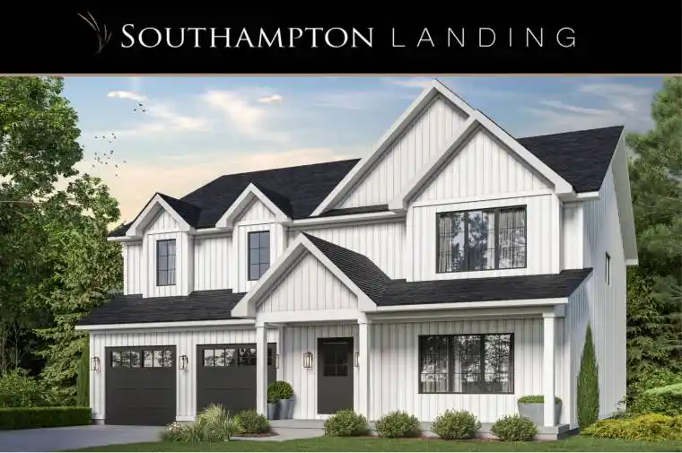 To Be Built – The Sherbrooke offers a rare opportunity to own a purpose-built duplex or multi-generational home in the highly desirable Southampton Landing community. With a total of 3,162 sq. ft. of finished living space, this home includes two fully self-contained units, ideal for extended family living, rental income, or investment.The main level unit features 1,865 sq. ft. with 2 spacious bedrooms, with a walk-in closet in the primary bedroom, plus a four piece full bathroom, large great room, and an open kitchen with island seating. A covered front porch and two-car garage (upper and lower bays) offer both curb appeal and functional storage.The second-floor unit spans 1,297 sq. ft. and includes 3 bedrooms and 2 full bathrooms, including a generous primary suite with walk-in closet and ensuite bath. This suite features its own private deck, large living/dining area, and full kitchen with island. Both units have their own individual laundry as well. Separate mechanicals and entrances allow for privacy and independence between the two units.Customize finishes and select from available upgrades to match your needs whether you’re looking for an income-generating investment or space for extended family. Located in Southampton, one of Lake Hurons most charming shoreline towns, residents enjoy access to walking trails, beaches, golf, tennis, shops, restaurants, hospital, schools, and a thriving arts scene, all just minutes away. Architectural Design Guidelines help preserve the beauty and value of the neighbourhood. Homes are built on poured concrete foundations with crawlspaces (some lots may allow for basements-ask for details). Floor plans and renderings may be subject to change. Buyer to apply for HST rebate. Inquire today for full duplex specs, upgrade options, and available premium lots. Live, rent, or invest at Southampton Landing with The Sherbrooke.