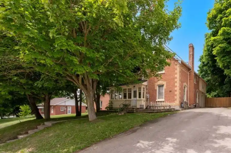 Welcome to 20 Main Street North in Grand Valley and feel the warmth and charm of this century home. A quaint enclosed front porch leads you to the main floor with classic hardwood floors, high ceilings, beautiful crown moulding & wide trim details. Updated galley kitchen features gas range and tile backsplash and a view of the pool & patio area. Enjoy hosting family and friends in the spacious dining room, adjacent to the living room with closed antique fireplace (not functional). The main floor laundry/mudroom offers a great rear entry from the driveway and walkout to the rear patio. The second floor offers a huge primary bedroom with lots of room for your king-sized bed, and has large PAX wardrobe and storage. The spacious main bathroom allows for downtime to soak in the antique tub and includes beautiful freestanding linen cabinet. Enjoy neutral decor and carpet-free throughout. Step outside to the private rear patio and heated, inground pool area, completely fenced for safety and pets. Whether you are a sun worshiper or needing shade – you are covered here with beautiful mature trees. The 20′ x 40′ inground pool has a deep end, gas pool heater about 4 years old & pool shed. Plus you can utilize the large garden shed and secondary driveshed for storage or hobbies. Quality metal roofing, upgraded attic insulation 2011, spacious parking/driveway with room for trailer or RV and wide gate to access yard.