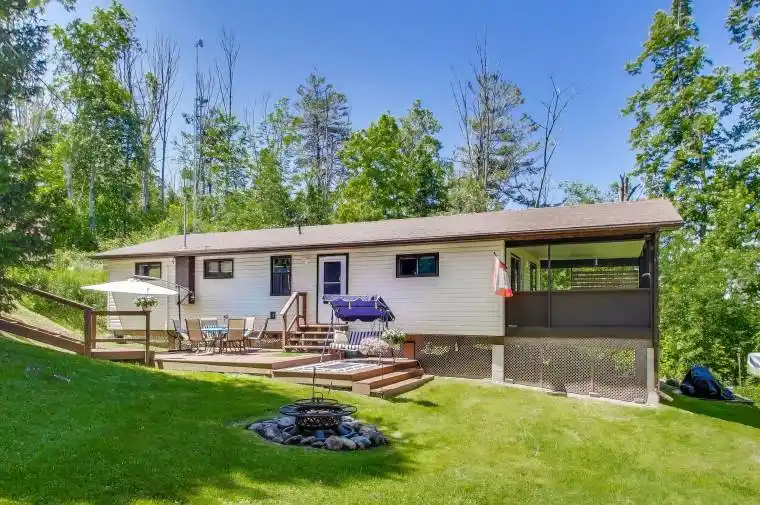 4 SEASON- FREEHOLD PROPERTY- Meticulously Maintained Inside & Out- VERY CLEAN- Fully Furnished- Turn Key- 3 BEDROOM RAISED BUNGALOW- Quiet Tree Lined Lot on PRIVATE ROAD W/ DEEDED LAKE ACCESS- Open Concept Kitchen to Dining & Living Rooms- Kitchen Walks Out to Large Covered Porch- Hot Tub- Firepit- PRIVACY- Less than 2 hours from Toronto- This place is move-in ready & PRICED TO SELL- Underside Spray Foam Insulated (2021), Heat Pump & A/C w/ SENSIBO wi-fi sensor (2021), Well Main Line Insulation & Heat Pipe Protection (2021), Well Pump (2021), Hot Tub (2018), TV/Internet Satellite Tower, Smart Home Connection for Heating, AC & Security Cameras, This sale includes ALL furniture & appliances… DON’T MISS THIS ONE!!!