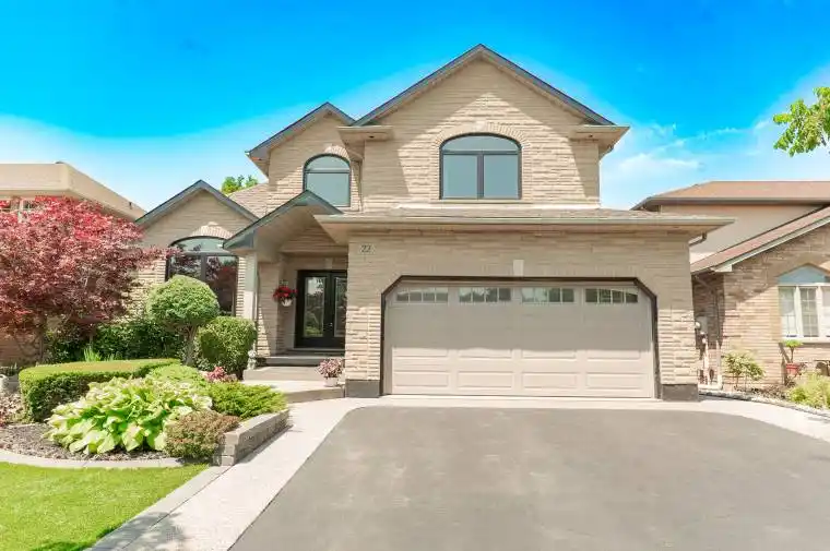 Welcome to 22 Tuscani Drive, Stoney Creek. This impressive custom-built 2-storey home offers 4+1 bedrooms and 3.5 bathrooms, ideally situated in a desirable, family-friendly neighbourhood. From the beautifully manicured front lawn to the double driveway with elegant raised aggregate, pride of ownership is evident at every turn. Step inside to a grand foyer highlighted by a striking staircase. The open-concept living and dining area is filled with natural light from skylights and features a walkout to a private back deck, perfect for indoor-outdoor living. The spacious kitchen offers room for casual dining at the breakfast bar overlooking the cozy family room. A convenient 2-piece bath and main floor laundry with inside access to the garage enhance functionality for busy families. Upstairs, you’ll find a generous primary suite complete with a 4-piece ensuite and walk-in closet, along with three additional bedrooms and a full 4-piece bath. The finished basement is an entertainers dream, featuring an expansive family room ideal for games or movie nights, an extra bedroom or games room, a 3-piece bath, and a bonus room with sink. The separate entrance from the garage to the basement provides excellent potential for an in-law suite. Enjoy summer evenings in your private backyard retreat, complete with a cozy deck the perfect setting for relaxing or hosting movie nights under the stars. Close to the QEW, schools, shopping, and recreation. Dont miss making this your home!