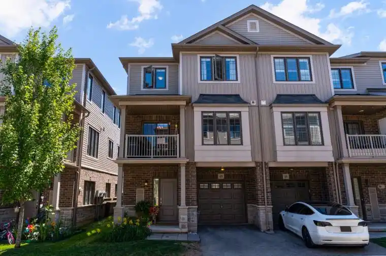 Welcome to 49-377 Glancaster Road, a premium end-unit where modern living meets comfort in this beautifully upgraded 2-bedroom, 1.5-bath townhome. Perfect for young professionals, small families, or downsizers ready to settle into a space that truly feels like home. Step inside to a bright, versatile entryway, an ideal spot for a home office, play area, or mudroom complete with a spacious closet and direct access to the garage. Head upstairs to the heart of the home: an open-concept living space with hardwood floors, recessed lighting, and large windows that fill the home with natural light. The upgraded kitchen features quartz countertops and premium KitchenAid appliances, seamlessly connected to the dining and living areas for easy entertaining. Slide open the doors to your private balcony and enjoy your morning coffee and evening sunsets! On the third level, youll find two generous bedrooms and a fully renovated main bath with a stunning walk-in glass shower and double vanity. Convenient bedroom-level laundry adds everyday ease, and the custom hybrid blackout blinds throughout the home offer privacy and comfort. With parking for two (garage & driveway), ample visitor parking, and a family-friendly community, this end-unit townhome has everything you need – all nestled in a quiet, welcoming complex close to Kopperfield Park, Meadowlands Power Centre, highway, trails, and more!