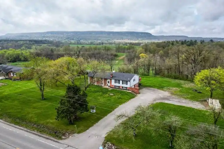 This is a stunning 3-bedroom bungalow that boasts a breathtaking view of the escarpment and is situated on a spacious one-acre lot. The property is equipped with two brand-new full bathrooms, a walk-out basement, and an open-concept kitchen that features stainless steel appliances. The cozy family room is perfect for relaxing, while the spacious living and dining areas lead to a deck that is perfect for entertaining friends and family. The bedrooms are equipped with deep closets, and the huge basement includes a rec room, exercise room, and storage room. This property is located in a great area for commuting, making it an ideal location location for anyone who needs to travel frequently. It has 9 parking with attached garage.