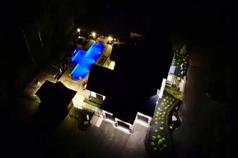 Welcome to an extraordinary estate where luxury, comfort, and convenience effortlessly converge. Nestled privately behind two custom homes on a sprawling 1.77-acre lot, this exceptional residence is an entertainer’s paradise, thoughtfully designed with impeccable craftsmanship and timeless elegance. At the heart of this home lies an extraordinary gourmet kitchen featuring custom cabinetry and an expansive double butler’s pantry with a secondary back kitchen. Each bedroom serves as a luxurious private retreat with spa-inspired ensuite bathrooms. The primary suite redefines opulence with a custom-designed five-piece ensuite and a dressing room spacious enough to serve as an additional bedroom. This suite also offers seamless walk-out access to a professionally landscaped backyard oasis. Soaring ceilings are complemented by plaster crown moulding, exquisite millwork, and built-in speakers. A thoughtfully designed open-concept layout seamlessly connects the family room, main-floor bedroom, and a combined mud and laundry room with garage access, enhancing everyday living. The finished basement epitomizes high-end leisure and entertainment, featuring a full-size bar, gym, stereo surround sound, and five TVs, including a 120-inch home theatre screen and an inviting fireplace. Step outside to your private resort’s meticulously landscaped yard, enveloped by lush, low-maintenance gardens and frequented by nature, including occasional deer sightings. Enjoy endless relaxation and entertainment with a custom pool, waterfall, hot tub, covered patio with dual built-in grills, and a change room. Also included: your very own 100-foot golf hole, full-size basketball court, and pickleball court, transforming every moment into a five-star experience. This distinguished property offers a rare opportunity to own a home designed for the most discerning homeowner, providing unparalleled luxury and an idyllic retreat in an exclusive, serene setting.