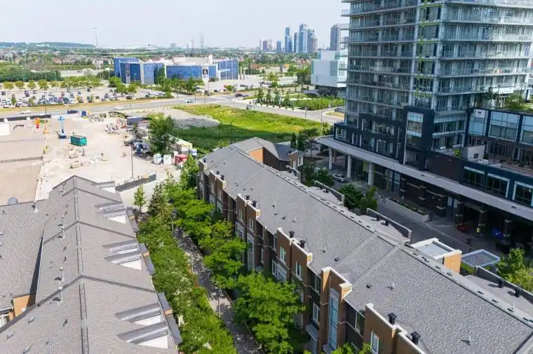This architecturally refined townhouse boasts a bold, modern design with expansive windows and sun-drenched southwest exposure. Enter through a stunning full-height glass entry door into a residence that exudes sophistication. Soaring 9-foot ceilings on both the main and second levels create an airy, open-concept layout. The main level is adorned with premium hardwood flooring, leading into an extended designer kitchen featuring custom cabinetry with valance lighting, polished granite countertops, a sleek backsplash, high-end stainless steel appliances, and a grand center island with a stylish breakfast bar perfect for both entertaining and everyday luxury. A solid oak staircase with elegant iron pickets elevates the interior design, while the primary retreat offers a spa-inspired 5-piece ensuite, a generous walk-in closet, and impeccable detailing. Bathrooms feature quartz vanity countertops and modern finishes throughout. The private, professionally landscaped interlocking patio offers an inviting outdoor space for al fresco living. Ideally situated just steps to Square One Shopping Centre, fine dining, cinemas, and public transit. Minutes from Hwy 403, University of Toronto Mississauga (UTM), and Sheridan College. This is urban living at its finest blending luxury, location, and lifestyle.