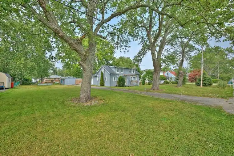 Whether you’re looking for next home or your year round retreat that’s within walking distance to the beach/lake, this home is for you. This updated home is situated on a large 105′ x 125′ lot with the potential of severance with a minor variance (buyer to do due diligence with the town). The main floor boasts plenty of space for the whole family with open concept living room/dining room/kitchen. Living room features a wood burning fireplace, large kitchen with plenty of cabinets & appliances, main floor laundry room, updated bathroom and a multi-purpose room with sliding doors to the back yard that is being used as the 4th bedroom. The upstairs features 3 bedrooms which includes a very spacious primary bedroom with built-in work area. Outside you’ll find a single detached garage with attached workshop/storage, fully fenced back yard, a deck, shed and a ton of space for the kids to play. Updates include freshly painted exterior, windows & furnace & air replaced in 2018. You won’t want to miss out on this one!