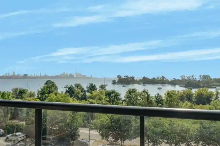 Welcome to Riva Del Lago, a prestigious residence in Toronto’s coveted Humber Bay Shores. One of the largest layouts in the building. This suite offers 1,350 Sq.ft. (1205 int + 145 ext) of refined living space, with a private balcony steps from lake Ontario. Truly unobstructed views of the lake and Toronto skyline. 2 spacious bedrooms plus a large den, and 2.5 elegant bathrooms, this home provides breathtaking water views from the living area and both bedrooms, each with an ensuite bath. Indulge in luxury with upgrades including plank laminate floors, smooth ceilings, a designer kitchen and high-end appliances enhance your living experience including a wine fridge. Additional conveniences include one parking spot and one locker. Exclusive amenities elevate your lifestyle with a dog wash, a two-level gym & much more. Be within walking distance to local shops, restaurants, parks, and nature trails. The highway and TTC are in close proximity, and you’re within minutes drive from downtown Toronto, Mississauga, or the airport.