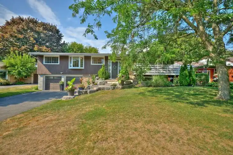 Simply breathtaking! Situated on an incredible 75 by 200-foot lot, 51 Pancake Lane offers comfort, style and space in equal measure! From the moment you arrive, the curb appeal is undeniable. A long driveway leads to a double-car garage, while stone steps framed by lush landscaping guide you to the front entrance. A charming wrap-around balcony spans the front and side of the home, creating an ideal spot to enjoy your morning coffee or unwind in the evening, surrounded by the beauty of picturesque Fonthill. The main floor is as inviting as it is functional. The bright living room features soaring ceilings, expansive windows that fill the space with natural light and a stunning gas fireplace. Opening to the dining room, with direct access to the balcony for a seamless indoor-outdoor experience, this space is intriguing. With two ovens, granite countertops, abundant cabinetry, an island, along with a lovely dining area, the kitchen is a true highlight of this home. Positioned at the back of the home, the primary suite offers a peaceful retreat with its own ensuite. Concluding the tour of the main floor is a beautifully updated 3-piece bath and two additional bedrooms, each with large closets, ensuring comfort and privacy for the whole family. Featuring a spacious recreation room, fourth bedroom, 4-piece bath and laundry room, all with plenty of storage and direct access to the garage – the lower level of this home is truly the cherry on top! Out back, the fully fenced yard, with a full irrigation system, offers a private oasis that has been beautifully curated. With mature trees, several seating areas and a gorgeous solarium equipped with hydro, this space offers a true extension of the home. Immaculately maintained and extensively updated, this property is perfectly positioned only moments from wonderful schools, shopping and scenic trails – combining everyday convenience with timeless charm. This is where your search ends and your next chapter begins – welcome home!