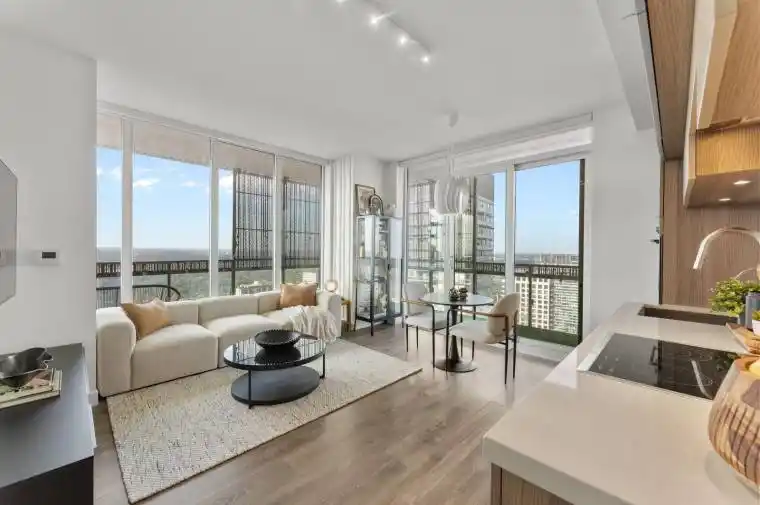 Impeccably designed 2-bedroom, 2-bath corner unit in one of Midtown Toronto’s most sought-after residences. This fully furnished suite curated by a world-renowned designer offers nearly 700 sq ft of elevated living with an open concept layout, floor to ceiling windows, and panoramic city views. Enjoy seamless indoor-outdoor living with a rare wraparound balcony accessible from every room ideal for morning espresso or evening wind downs. The modern kitchen features integrated storage, and premium finishes throughout. Direct underground access to the Eglinton subway and LRT ensures effortless commuting. Surrounded by top tier restaurants, upscale shops, and urban essentials. Residents enjoy access to executive caliber amenities, including a 25th-floor indoor infinity pool, professional gym, yoga studio, 24-hr concierge, and elegant lounge spaces. Turnkey, stylish, and perfectly located this is city living for those who expect more.