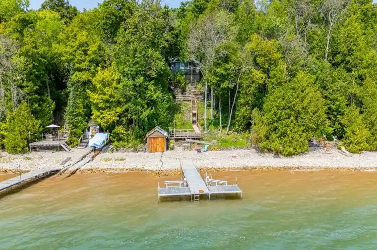 Waterfront retreat on Mallory Beach! This charming 2-bedroom, 1-bathroom cottage offers 75 feet of crystal-clear Georgian Bay frontage and endless opportunities for summer fun. Spend your days on the water from your private dock, complete with two Sea-Doo lifts, or relax and take in the breathtaking views. A detached garage provides ample storage, while the guest bunkie adds extra space for visitors. With plenty of parking, a relaxed cottage-country vibe, and a location just minutes from Wiarton, this property is perfect for weekend escapes, family gatherings, or making lifelong memories by the bay.