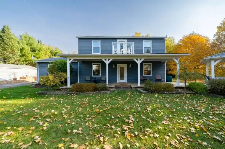 Welcome to 17682 Loyalist Parkway, a charming country retreat nestled in the heart of Prince Edward County. Set on just under 2 acres, this two-storey home blends peaceful rural living with modern convenience, perfect for families, multi-generational living, or anyone seeking extra income potential. Step inside to over 2,100 square feet of well-planned living space. The main level welcomes you with a bright foyer and cozy living room, complemented by a versatile sitting area that easily adapts to your lifestyle. The spacious family room flows into a dedicated dining room, ideal for hosting family dinners and special occasions. At the heart of the home, the kitchen offers plenty of counter space, modern appliances, and room to create your favourite meals. The main floor also features a convenient primary bedroom complete with a 3-piece ensuite. Upstairs, you’ll find three additional bedrooms and a 3-piece bathroom with laundry, bringing ease to daily routines and plenty of space for everyone. Out back, a large deck overlooks the expansive yard, perfect for enjoying quiet mornings, outdoor meals, or evenings under the stars. A standout feature of this property is the fully self-contained secondary rental unit, complete with its own kitchen, living area, bedroom, 3-piece bath, and in-suite laundry. With an active Short-Term Accommodation (STA) license, it offers excellent income potential or flexible space for guests or extended family. Located just minutes from wineries, shops, and the natural beauty of Prince Edward County, 17682 Loyalist Parkway offers a rare opportunity to live, relax, and earn, all in one place.