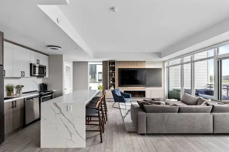 Rare Marina-Facing Residence in Friday Harbor Welcome to one of Friday Harbors most coveted waterfront residences. This exceptional and rarely available 2-storey Stacked Townhome condo is 1 of only 12 exclusive stacked townhomes in the entire resort that directly overlook the vibrant boardwalk and shimmering marina and among the select few to feature floor-to-ceiling windows, bathing the interior in natural light and showcasing breathtaking panoramic views. Elegantly upgraded with over $200,000 in premium finishes, this sophisticated home offers a thoughtfully designed open-concept layout that perfectly blends comfort and style. The main floor boasts a spacious living area, a chic dining space, and a designer kitchen all opening onto a generously sized private terrace, ideal for alfresco dining and entertaining. Upstairs, retreat to the serene primary bedroom and second bedroom, both with direct access to the upper-level balcony overlooking the marina. Two beautifully appointed bathrooms, luxurious finishes, and natural light throughout create a bright, calming, resort-like ambiance. Situated in the heart of Friday Harbors renowned waterfront community, residents enjoy unparalleled amenities including championship golf, scenic hiking trails, pristine beaches, a world-class marina, and a year-round calendar of curated events and activities. All this just a short drive from the city yet it feels a world away. An extraordinary opportunity to own a truly special residence in one of Ontario’s premier lifestyle communities.
