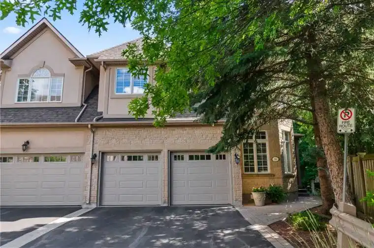 Discover this rare gem in the exclusive West Oak Trails community, where only twenty-one fortunate homeowners get to call this secluded oasis home. This executive end unit townhome offers a perfect blend of privacy and sophistication, backing directly onto the trails of tranquil Sixteen Mile Creek. With four spacious bedrooms and four plus 1 bathrooms spread across a total of 3,716 square feet of thoughtfully designed living space, including a convenient elevator ensuring effortless access to all levels. This home welcomes you with nine-foot ceilings and an open concept main floor with serene treed views creating a peaceful backdrop throughout. Step onto the balcony off the living room and breathe in the serenity of your private backyard. Upstairs, the generous primary suite features a cozy gas fireplace, five-piece ensuite, and walk-in closet. Three additional bedrooms offer comfort and convenience, two with access to ensuite bathrooms. The fourth is set as an office with built-ins perfect for those who work from home. The walk-out basement leads to your personal outdoor haven, complete with a stone patio perfect for entertaining or quiet morning coffee moments. The two-car garage and additional driveway parking ensure practicality meets luxury. This lovingly maintained home is move-in ready or add your own personal touch to transform it into something truly extraordinary. With exceptional privacy, it’s an opportunity that rarely presents itself in this sought-after community. Your chance to own a piece of tranquil luxury is here.