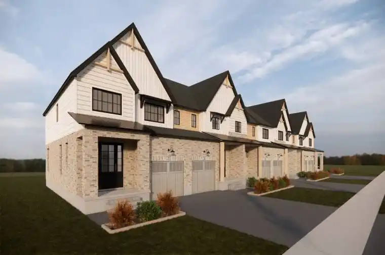 THE HOMESTEAD a lovely 1676sq ft interior townhome designed for efficiency and functionality at an affordable entry level price point. A thoughtfully laid out open concept living area that combines the living room, dining space, and kitchen all with 9′ ceilings. The kitchen is well designed with additional storage and counter space at the island with oversized stone counter tops. A modest dining area overlooks the rear yard and open right into the main living room for a bright airy space. Ascending to the second floor, you’ll find the comfortable primary bedroom with walk in closet and private ensuite featuring a fully tiled shower with glass door. The two additional bedrooms are designed with simplicity and functionality in mind for kids or work from home spaces. A convenient second level laundry room is a modern day convenience you will appreciate in your day to day life. The basement remains a blank slate for your future design but does come complete with a 2pc bathroom rough in. This Finoro Homes floor plan encompasses coziness and practicality, making the most out of every square foot without compromising on comfort or style. The exterior finishing touches include a paved driveway, landscaping package and beautiful farmhouse features such as the wide natural wood post. Ask for a full list of incredible features and inclusions! Completion in 2026 but you can still take advantage of the 2025 pricing while you can! ** Photos and floor plans are artist concepts only and may not be exactly as shown.