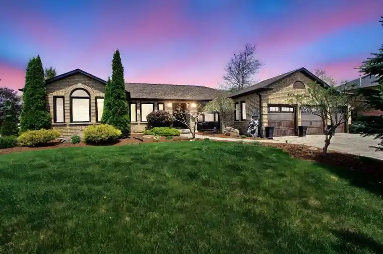 Welcome to 2706 Shering Crescent! A beautifully maintained bungalow with over 3,000 sq. ft. of finished living space, situated on a premium corner lot in Strouds family-friendly community. This 2+1 bedroom, 3-bath home showcases pride of ownership with hardwood floors on the main level, high-end carpet in the fully finished lower level, and thoughtful upgrades throughout. Enjoy excellent curb appeal with a 3.5 car interlock driveway (parking for 10+) and a heated 3-car garage equipped with its own tankless water heater perfect for car enthusiasts or a workshop. A Generac backup generator ensures peace of mind and uninterrupted comfort. Inside, a functional mudroom/laundry area with garage access leads to an open-concept kitchen and living area. The chef-inspired kitchen features a large cooktop, built-in oven, and built-in coffee machine, while the living room centers around a cozy gas fireplace. A formal dining area, enhanced by a stunning waterfall feature, creates an elegant setting for entertaining.The spacious primary suite offers a walk-in closet and spa-like ensuite with jacuzzi tub, complemented by a second large bedroom and full bath on the main floor.The lower level boasts a generous rec room with pool table, built-in mini bar, a large third bedroom, storage room, and 3-piece bath complete with a private sauna. Outside, the nearly half-acre lot is beautifully landscaped and includes a large interlocked patio ideal for BBQs and outdoor gatherings.This property has it allspace, comfort, and premium features. Dont miss your chance to own 2706 Shering Crescent!