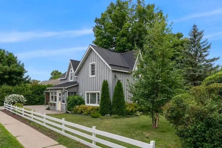 Charm meets modern comfort in this centrally located home that has been up-dated over the years, while preserving it’s original character. Located on an oversized 99′ x 132′ corner lot (possibility of 2 lots), the 1914 square foot home is only minutes to both the Beach and the Downtown area. The main floor consists of a front porch, central foyer, dining room, living room, kitchen and a 2 pc washroom. There is a 2006 addition that adds a family room, an office nook area and separate laundry/utility room and 2 doors to the fenced backyard, garage/shed, patios and perennial gardens. The second level has a large primary bedroom with double closets, two other bedrooms and a 4-piece washroom with separate soaker tub and shower. Updates over the years include a metal roof, windows and doors, plumbing and electrical, hard-wired smoke and carbon monoxide alarms, flooring and two gas fireplaces. An energy audit in 2021 resulted in added attic insulation, updated lighting and a new fridge and stove. The outside was redone in 2018 with a new paving stone driveway, carport, eaves with leaf guards, some fencing, painting and landscaping, including updating the sand point. This home is all ready for you to just move in and enjoy.