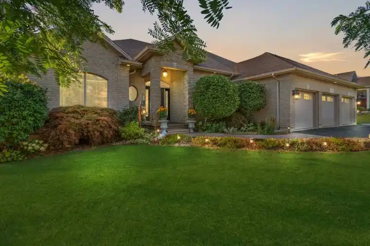 Exclusive Foxhill Estates! This stunning bungalow sits on a private 1/2 acre lot, surrounded by lush gardens and designed to blend elegance, comfort, and lifestyle. From the inviting front walkway to the triple car garage and spectacular backyard retreat, every detail has been thoughtfully crafted. With almost 4,000 sq. ft. of finished living space, it offers 3+2 bedrooms and refined finishes throughout, hand-scraped oak flooring, espresso cherrywood cabinetry, granite & marble surfaces, oversized windows, pot lights, and more. The main level is ideal for both quiet evenings and entertaining. A formal dining room, private office/den, and grand family room with a striking stone fireplace set the stage for gatherings. The chefs kitchen boasts custom cabinetry, granite counters, beverage fridge, breakfast bar, and a bright dinette with walkout to the yard. The primary suite is a true retreat with walk-in closet and spa-inspired ensuite, while two additional bedrooms, a guest bath, and laundry/mudroom complete this level. The finished lower level offers endless possibilities, enjoy a games area, a sprawling recreation/theatre room with gas fireplace and wet bar, plus two more bedrooms, a 3pc bath, workshop, and abundant storage. Outdoors, discover your private resort-style oasis. Host summer parties on the stamped concrete patio, sip morning coffee beneath the covered patio, or cool off in the heated saltwater pool with cabana, all within a fully fenced yard and beautifully landscaped gardens. Set on a quiet street, this home delivers the lifestyle you’ve been waiting for.