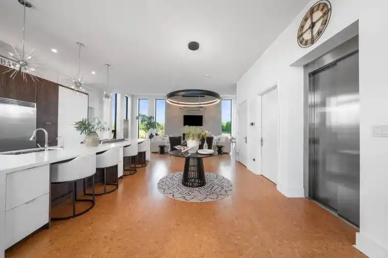 Located on the prestigious 36/37 Nottawasaga Side Road affectionately known by locals as Millionaires Row this one-of-a-kind, custom-built estate offers the ultimate blend of luxury, functionality, and refined country living. Set on an impressive 1.195-acre lot surrounded by rolling landscapes and breathtaking views of Georgian Bay, the property enjoys a coveted location across from a picturesque equestrian facility and just minutes from downtown Collingwood, Blue Mountains ski hills, and scenic trails.Designed with modern living in mind, this architectural gem caters to multigenerational families, home office needs, and income potential. The expansive open-concept main floor features soaring ceilings, exquisite finishes, and a statement fireplace, while floor-to-ceiling windows flood the space with natural light and showcase uninterrupted countryside vistas. A stylish bar, intimate lounge areas, and a dedicated home office create effortless flow for both entertaining and everyday comfort.Retreat to the hotel-inspired primary suite, complete with a spa-like ensuite, walk-in shower, soaker tub, and custom closets. A commercial-grade elevator connects all three levels, while the radiant heated garage with space for up to seven vehicles plus a workshop is a rare luxury for car enthusiasts.The self-contained legal accessory suite, with its own entrance, kitchen, bathroom, laundry, and deck, is ideal for guests, caregivers, or rental income. Upstairs, enjoy two additional bedrooms, a second full kitchen with leathered granite, wet bar, and multiple patios capturing stunning views of Georgian Bay.Unwind in the rooftop hot tub or explore the lush, landscaped grounds featuring eco-friendly clover lawns, $100,000+ in armour stone, and a dramatic 65-foot Koi pond. This is a rare opportunity to embrace refined rural living in a truly extraordinary home.