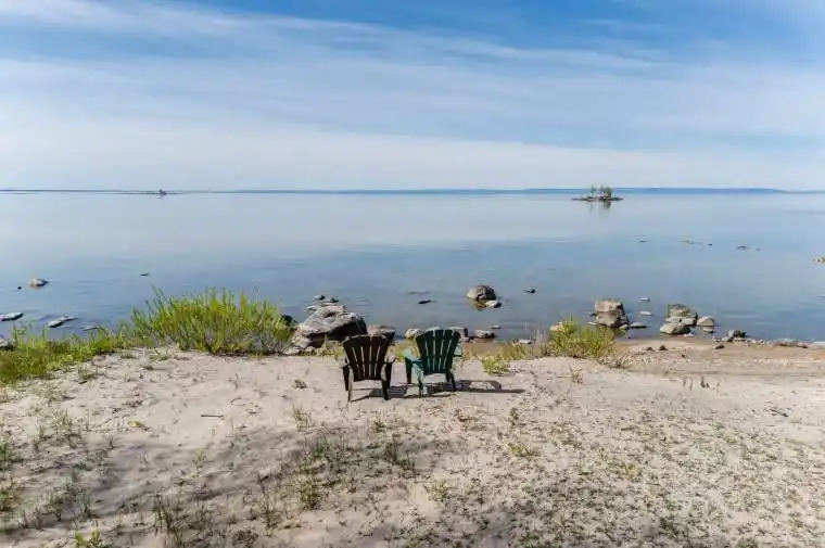 Rare South-Facing Waterfront Gem on Iconic Wahnekewening Beach. Welcome to a once-in-a-lifetime opportunity to cherish a piece of Georgian Bay’s shoreline. Nestled on the exclusive and highly sought-after Wahnekewening Beach, this south-facing waterfront property offers 50 feet of pristine, sandy frontage with an exceptionally deep lot an ideal canvas for lakeside living. Positioned to capture both breathtaking sunrises and unforgettable sunsets, the southern exposure is among the most desirable orientations on the bay, offering all-day sunlight and warm, golden light filtering through every room. Whether you’re sipping coffee at dawn or enjoying a twilight bonfire, this home invites you to embrace natures rhythm. Originally built in the 1940s and lovingly held in the same family for generations, this property is steeped in history. Like many on this stretch of beach, its part of an if you know, you know legacy rarely available and always treasured. Homes here are often passed down, not sold making this a truly rare find. The existing home features a solid poured concrete foundation, a newer well for reliable water supply, and a cozy gas fireplace to warm cool evenings. Whether you choose to refurbish the current structure or build your dream beach house, the possibilities are endless. This is your chance to create a private family retreat or year-round paradise in one of the region’s most tightly held communities. Tucked away near the end of a quiet dead-end road, privacy and tranquility are naturally built into the landscape. Let the gentle waves be your soundtrack, the sand your backyard, and the views your ever-changing artwork.