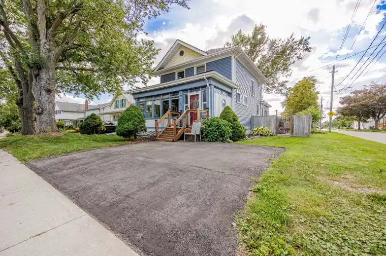 Turn of the Century CHARACTER Two storey Home with 8 1/2 foot ceilings, LARGE Rooms, Leaded Glass Accent Windows, Spacious Front Porch with scenic WATER VIEWS of the Welland Canal. Watch the ships go by! All of the original hardwood floors have also been REFINISHED nicely! Updated exterior siding and Thermal windows make for a warm, cozy, draft free home. All the wants are here! Quiet street with low traffic, comfortable spacious rooms , clean and bright, updated nicely and well maintained. Main floor 2pc & Main Floor LAUNDRY & FAMILY ROOMS offer convenience so you will never need to finish the basement. Patio doors to a wonderful wrap around deck. Gas FP in Living Room and 2window seats. Four Bedrooms with ample storage. Wooden staircase to second storey has been lovingly refinished. Outdoor living features acfully fenced back yard provides privacy and a safe space for kids and puppies. Two separate paved drives allow 3 cars parking plus A long detached garage also has new siding and doors and can fit two cars long. The newer CUSTOM DECKING has two access doors from FR and Kitchen and a dedicated BBQ area and the yard has mature shade trees and low maintenance Perennial gardens. Location is ideal- close to schools, shopping, university, shopping mall, downtown and major highways. This home has character plus modern amenities the best of both worlds