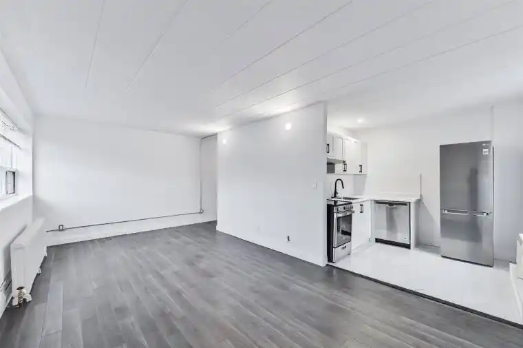 This fully renovated One-Bedroom unit is situated in an impeccably maintained building just steps from The Danforth! The front hallway and entrance feature a large double-mirrored closet for clothing storage. The spacious living area offers ample room for both relaxation and work-from-home needs, and is flooded with natural light thanks to a large window spanning the length of the room. The modern kitchen boasts stainless steel appliances (including a dishwasher, stove with vent, and LG fridge), ample cabinet storage, and is complemented by an elongated white subway tile backsplash, sleek black fixtures, and marble floor tiles. An in-unit air conditioner is also included. The bedroom offers a mirrored double closet and large window for extra light. The stylish bathroom features a walk-in shower with marble hex tile and sleek black fixtures. Conveniently located close to TTC, parks, restaurants, and amenities such as the popular Left Field Brewery and the Danforth Music Hall, this unit is the perfect home for a young professional or couple saving to buy their first home! **EXTRAS** Unit includes Dishwasher & A/C