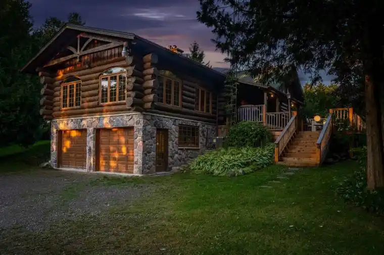 Welcome to your stunning Log Cabin retreat, perfectly nestled on a serene 3.14-acre private lot just 15 minutes from town. This charming home features 2+2 spacious bedrooms and 2 bathrooms, offering over 1900 square feet of living space upstairs and an additional 1200 square feet below. The updated open-concept kitchen seamlessly flows into a grand great room with vaulted ceilings, flooded with natural light and showcasing breathtaking views from every angle. Step outside to a large deck where you can unwind in the hot tub while soaking in the tranquility of the surrounding woods and the soothing sounds of the nearby creek. Ideal for those seeking a unique blend of comfort and nature. Escape the city and enjoy this perfect entertainers dream with mother nature right at your finger tips! -New Septic 2024 – New Water Pump 2023 – Hot Tub 2022 – New Water Softener 2021 – New Air Conditioner 2021 – UV Water Treatment System – Shed has power.