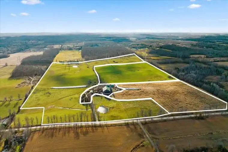 Welcome to a multi-generational, 80 year family farm, with 93 acres of prime farm land! Managed holistically without any use of GMO or round-up ready crops. Equipped with 3 spring fed ponds, a turnkey 5 bedroom fully bricked home with steel roof, and multiple accessory buildings/barns. Over 88 acres of fertile, farmable land: Current use: 50+/- acres of open pasture & grazing, 22+/- acres hay field, 16+/- acres open pollinated/hybrid corn field, and 4+/- acres for farmstead & homestead with a 2210 sqft brick home. Other structures: Steel frame workshop 48’x32′, Wooden drive shed/storage 60’x24′, Bank barn 100’x75′, Calhoun tarp building 100’x42′, Poured stave concrete silo 70’x16, extension silo 55’x12′ See brochure for more details. Do not enter/walk property without scheduling a showing. All cattle and equipment are negotiable in sale.