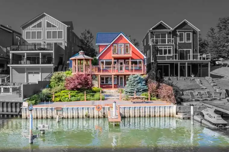 LAKEFRONT ALTERNATIVE | SENSATIONAL & ICONIC GRAND BEND RIVERFRONT CHARMER W/ PANORAMIC LAKE VIEWS | 50 FT OF BOAT DOCKAGE | ROCK SOLID 4 SEASON WALK-OUT DUPLEX | 3 STORIES OF WATER FRONTAGE FOR EPIC SUNSETS: This 5 bed/3 full bath/2 kitchen 2611 sq ft waterfront charmer is a definitive example of the phrase ONE-OF-A-KIND. Are you in search of a property that can offer lakefront views & breathtaking sunset panoramas with your boat docked 30 ft from your front door? Such a phenomenal combination of benefits is extremely rare. These exceptional properties, of which Grand Bend has very few; offering boat docks w/ LAKEFRONT benefits situated just 325 mtrs from Grand Bend’s famous & forever sandy Main Beach at the river mouth; are kept in the family & cherished by their owners for decades. And within this elite limited-edition category of Real Estate, 19 Shady Lane is irrefutably at the top of the charts due its outstanding geographic position. The photos are true, a visual truth that is even more stunning in person, outdoors & in, from every riverfront & lakeside angle in the SW facing sections of the house. Yes, this lot is superb, but the magic & beauty of this property is found throughout the enchanting home that is so perfectly positioned upon it. This extremely well-kept gem is the Romeo of the riverfront from the various levels of lake view patios, decks, & covered + uncovered outdoor spaces to the immaculate gardens & that lifetime steel eco roof – & the interior is just as tight! The classic hardwood flooring & endless waterfront windows frame in the perfect setting, with the oversized lakeview riverfront master w/ private balcony being unbeatable. The home also boasts a completely self-sufficient walk-out 2 bed-unit w/ its own kitchen. The clever placement of the 5 bedrooms across 3 levels w/ main level laundry is ideal for a multi-generational situation & the secured/gated entrance & parking is perfect for all the toys! Time to live the dream!