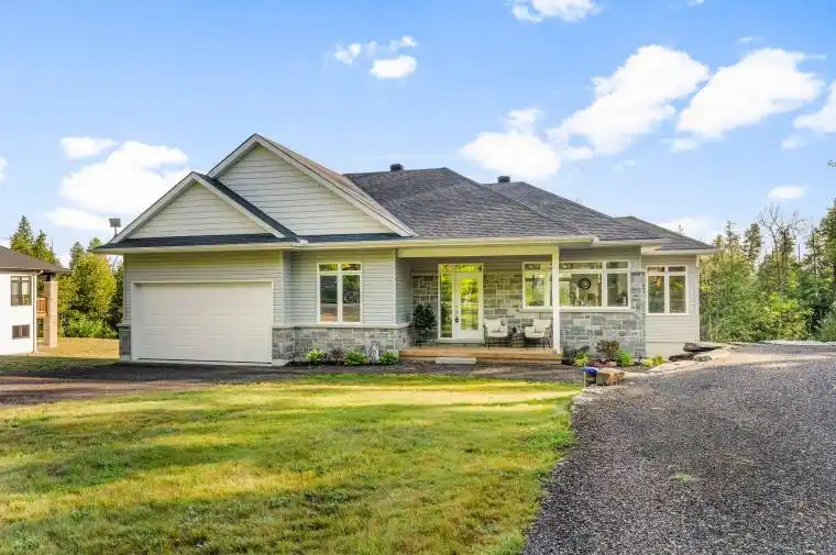 Located in the desirable community of Calabogie, just steps from the Calabogie Highlands Golf Course and a short drive to the Calabogie Motorsports Park, this home is a car enthusiast’s dream! This immaculate 3 bed, 2 bath bungalow was built in 2023 by Mackie Homes and features high-end finishes throughout. The open-concept kitchen and dining area are highlighted by stunning quartz countertops and a floor-to-ceiling stone gas fireplace, creating a warm and inviting space to gather. The primary bedroom offers a luxurious ensuite and a walk in closet. 2 additional large bedrooms are offered on the main floor as well as main floor laundry station located centrally to the bedrooms. The fully finished basement offers additional living space complete with a wood-burning fireplace and a walk-out with access to the backyard( no rear neighbours) . In addition to the attached garage, this property boasts a newly built 3-car detached garage featuring 10 ft high doors and a 9000 lb hoist (included in the sale)perfect for working on vehicles or storing large equipment. Below the 3 car garage is access to a lower-level garage bay, ideal for storing recreational toys, tools, or lawn equipment. Enjoy the perfect balance of comfort, functionality, and lifestyle in one of Calabogie’s most sought-after locations. Whether you are looking to spend more of your days at the golf course, the race track, the beaches, hiking the incredible trails, ATVing or skiing- Calabogie’s 4 seasons of recreational fun provides opportunities for everyone!