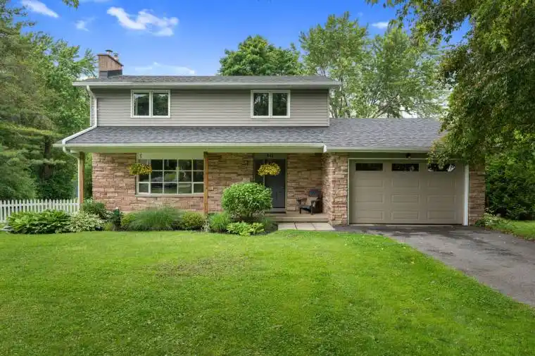 Nestled on just over half an acre in one of Kingston’s sought-after neighbourhoods, this beautifully updated two-storey home offers six bedrooms, four bathrooms, and a layout ideal for families or multi-generational living. Purchased in 2014 and extensively renovated in 2017 – including new windows and a stylish interior refresh – the home blends classic charm with modern comfort. The main floor welcomes you with a spacious foyer, leading into a cozy living room with hardwood floors and a wood-burning stove. French doors open to a bright, vaulted-ceiling great room that combines the kitchen, dining, and sitting area. The kitchen features a granite island with cooktop, stainless steel appliances, walk-in pantry, and sliding doors to the expansive backyard. A 3-piece bathroom with laundry and a home office complete the main level. Upstairs are three well-sized bedrooms, a full bathroom, and a primary suite with a spotless 4-piece ensuite. The lower level includes a fully finished in-law suite with two bedrooms, its own kitchen and eat-in bar, a full bathroom, and a large living area. Notable updates include a new roof and carpets in 2024, eaves with gutter guards in 2024, natural gas furnace and owned electric hot water heater, and a 200-amp electrical panel. Located just minutes from shops, restaurants, and entertainment and within walking distance of scenic trails, Cataraqui Golf & Country Club, and St. Lawrence College – this home offers space, flexibility, and location all in one.