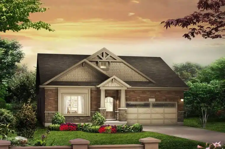 *Other floor plans are available for this lot* Welcome to the desirable Woodstream community, where quality craftsmanship and thoughtful design come together in this stunning bungalow by Devonleigh Homes. Set on a beautiful corner lot, this Bluewater II floor plan offers exceptional curb appeal with its elegant exterior, an attractive mix of stone, brick, and vinyl siding in a timeless neutral palette. A private foyer welcomes you into the home. From here, a distinctive diagonal hallway leads you into the heart of the home, where the open-concept kitchen, breakfast area, and great room come together in a bright and functional space ideal for both daily living and entertaining. Tucked across the back of the home, the primary suite is a true retreat. Enjoy tranquil backyard views, a well-appointed 4-piece ensuite, and a walk-in closet that provides both convenience and comfort. At the front of the home, a versatile den provides the perfect space for a home office, reading room, or hobby space. For those who need a second bedroom on the main level, a builder upgrade is available to convert this area, offering added flexibility to suit your lifestyle needs. Additional features include a stylish two-piece powder room and a laundry room that connects directly to the attached double-car garage, ideal for everyday functionality and a tidy arrival point for family and guests. The full walk-out basement is left unfinished, presenting an excellent opportunity to customize the space to your liking, whether that’s creating a recreation area, additional bedrooms, or a home gym. This thoughtfully designed home blends comfort, style, and opportunity, all within a sought-after community. Join the vibrant and welcoming neighbourhood of Woodstream and start the next chapter of your life.