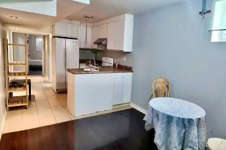 Basement apartment available with a private separate entrance through the garage, featuring a spacious layout with 2 bedrooms, a kitchen, living room, and 1 bathroom. Tenant is responsible for 30% of utilities (hydro, gas, water & hot water tank). Shared laundry facilities are available, with no backyard access.