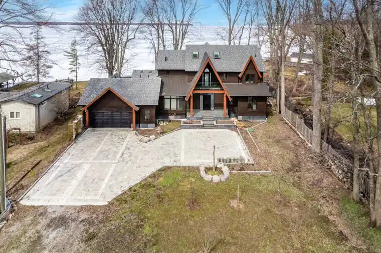 Welcome to luxury waterfront living on Lake Simcoe. This custom-built 4,500sqft home sits at the end of a quiet dead-end street, offering unmatched privacy and breathtaking views. Designed for year-round comfort, featuring heated flooring throughout, a geothermal system, a UV water system, & triple-pane glass windows. The open-concept main living space is centred around the view, w/ a striking fireplace, w/ a wall of windows that flood the home with golden light at sunset. W/ 5 bedrooms3 w/ ensuites, 2 w/ balconies, and 1 w/ a w/o to the back deck this home offers both comfort and versatility. The main-fl primary suite delivers an unmatched connection to the water, w/ stunning views that make it feel as if you’re right on the lake. Upstairs, a second primary suite offers a private retreat w/ its own balcony, w/i closet, & a spa-like ensuite featuring a soaker tub, a spacious glass walk-in shower w/ custom tile, & double sinks. The upper level is also home to an impressive great room w/ soaring 18ft cathedral ceilings, a fireplace, & wet bar w/ full cabinetry plus island. This flexible space can serve as an add. family room, home office, gym, or be transformed into a private in-law suite. Step outside to nearly 100ft of pristine waterfront, complete w/ a 50ft dock, a sandy shoreline, & a boat ramp for effortless lake access. Whether you’re lounging on the dock, kayaking in the calm waters, or unwinding after a day of work in the sauna, this property delivers an unparalleled lakeside lifestyle.