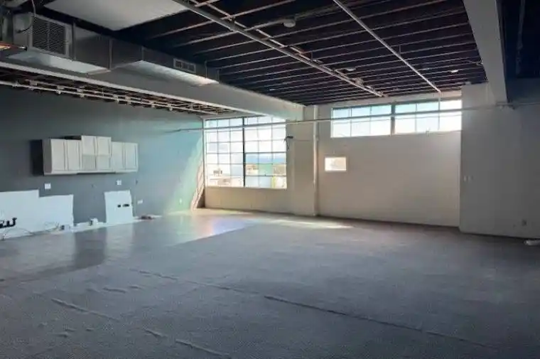 Leaside open 2nd floor studio with 13 ft ceilings, 2 pc washroom, kitchenette and free onsite parking