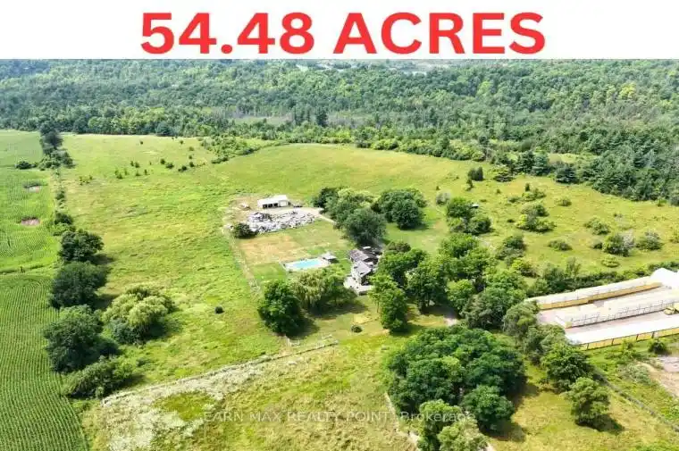 Discover an unparalleled opportunity to own a truly exceptional property in the highly coveted area of GEORGETOWN. This rare offering comprises 54.48 acres of pristine, FLAT LAND, presenting immense potential for FUTURE DEVELOPMENT. Nestled within this expansive landscape is a delightful 2-bedroom home, complete with 2 bathrooms and a generous 3-car garage. Situated at the strategic intersection of Trafalgar Road and Highway 7, the property boasts proximity to all essential amenities and thriving subdivisions. Embrace the chance to invest in this remarkable piece of land, poised for significant growth and limitless possibilities.Extras: Hot Water Tank Owned, Hot-Tub, Common Swimming Pool, Whole Property is Fenced, Natural Gas On Hwy 7.