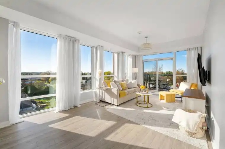 A Corner luxury condo that epitomizes elegance and comfort. Nestled within the South District, this stunning 2-bedroom, 2-bathroom unit stands out as one of the five largest residences in the entire development, promising an unparalleled living experience. The expansive living room beckons from the moment you enter, offering a seamless flow for entertaining guests or unwinding in style. The extra-large living space is complemented by floor-to-ceiling windows W/customized blinds that flood the interior with natural light, creating a warm and inviting ambiance throughout the day. In the evenings, there are breathtaking sunset views from the balcony, where you can indulge in the beauty of captivating sunsets while enjoying your favourite beverage. Customized voice-activated blinds &luxury window coverings. Upgraded Bosh Fridge (2024), custom closets with mirror doors(2024).MUSTSEE!!over50k in upgrades!!