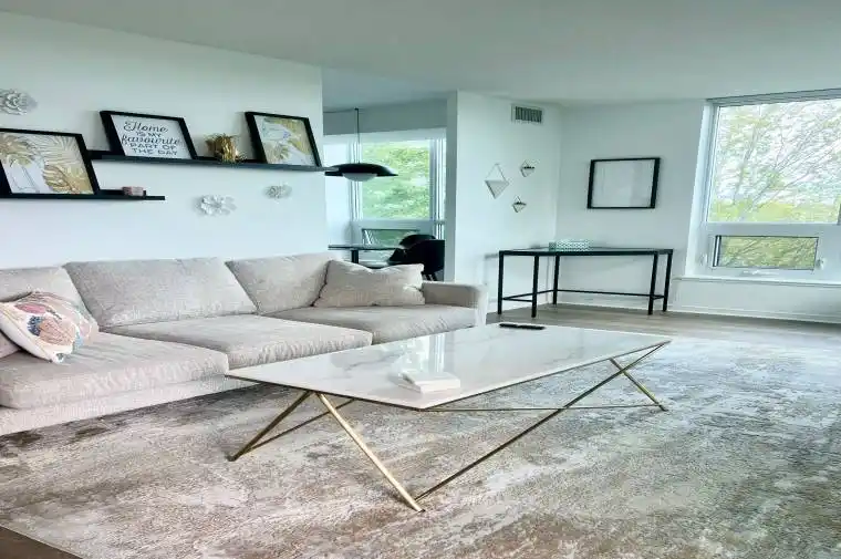 Spacious, bright, beautifully maintained and thoughtfully furnished 950sf corner unit available for mid-term or standard lease. Situated at treetop-level, the unit’s large windows overlook lush greenery and serene park space, creating a bright, private and tranquil retreat. Inside, an upgraded, carpet-free split bedroom design offers ideal privacy and ample living space. The primary bedroom is generously sized and includes a custom walk-in closet and 4-pc ensuite. The second bedroom is versatile – currently furnished with a bunk bed (negotiable) but equally suitable as a home office, nursery or guest room. The kitchen features ample cabinetry and pantry space and is sizeable enough for a 4pc dining table. Building amenities include 24-hour security, an indoor pool, fitness centre, party rooms w/ billiards tables and a terrace w/ shared bbqs. Unbeatable location across from Erin Mills Town Centre, Credit Valley Hospital, and near to hwy access and top-rated schools.