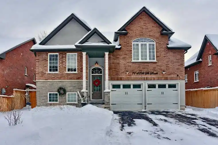 This all-brick, well-built home in Wasaga Beach’s west end offers excellent in-law potential. Boasting four bedrooms, it’s located just minutes from sandy beaches, shopping, restaurants, and the skiing opportunities at Blue Mountain. The open-concept main level features 9-foot ceilings and an upgraded kitchen with stainless steel appliances, a center island, and quartz countertops. Step out onto the deck with privacy louvers that overlook a fully fenced backyard. The spacious primary bedroom includes walk-in closets, vaulted ceilings, and a full ensuite bath. A second bedroom also has its own 3-piece ensuite. The home includes a double garage with inside entry to the main level, and the unspoiled basement offers high ceilings, large windows, and roughed-in plumbing for a fourth bathroom perfect for creating an income-generating suite. Situated on a quiet street, this home offers both comfort and convenience.